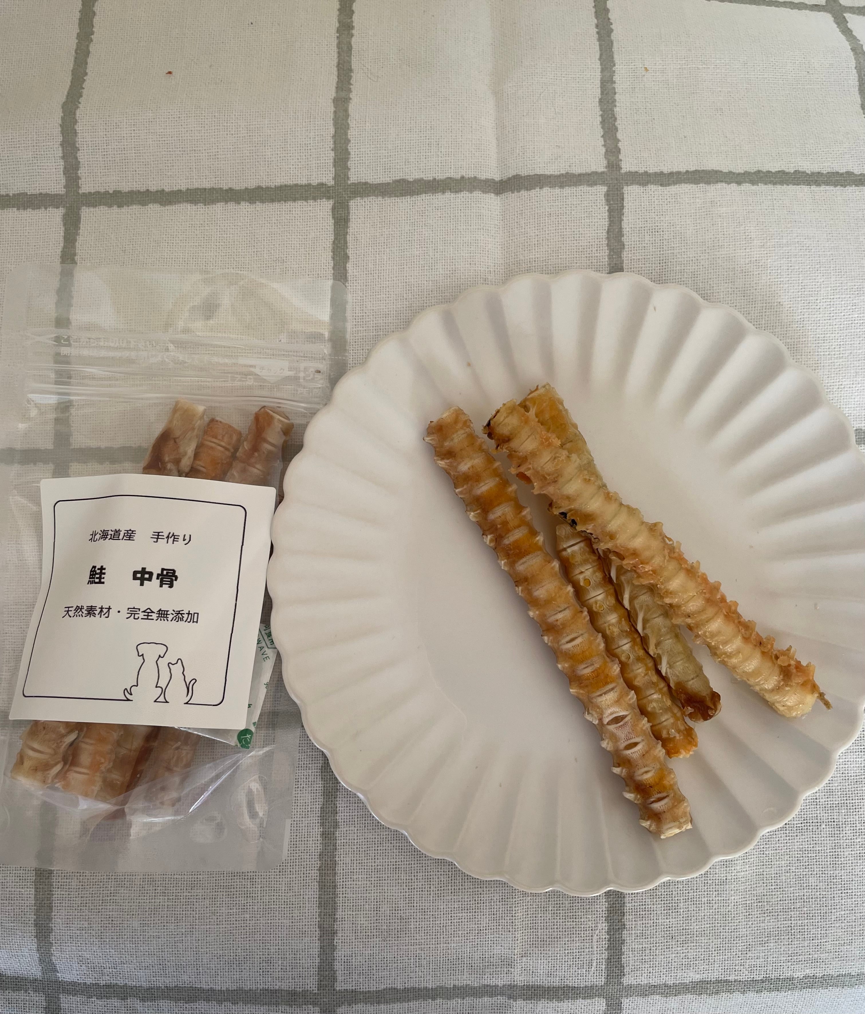 丁寧に捌いた鮭の中骨をじっくりと乾燥させました。