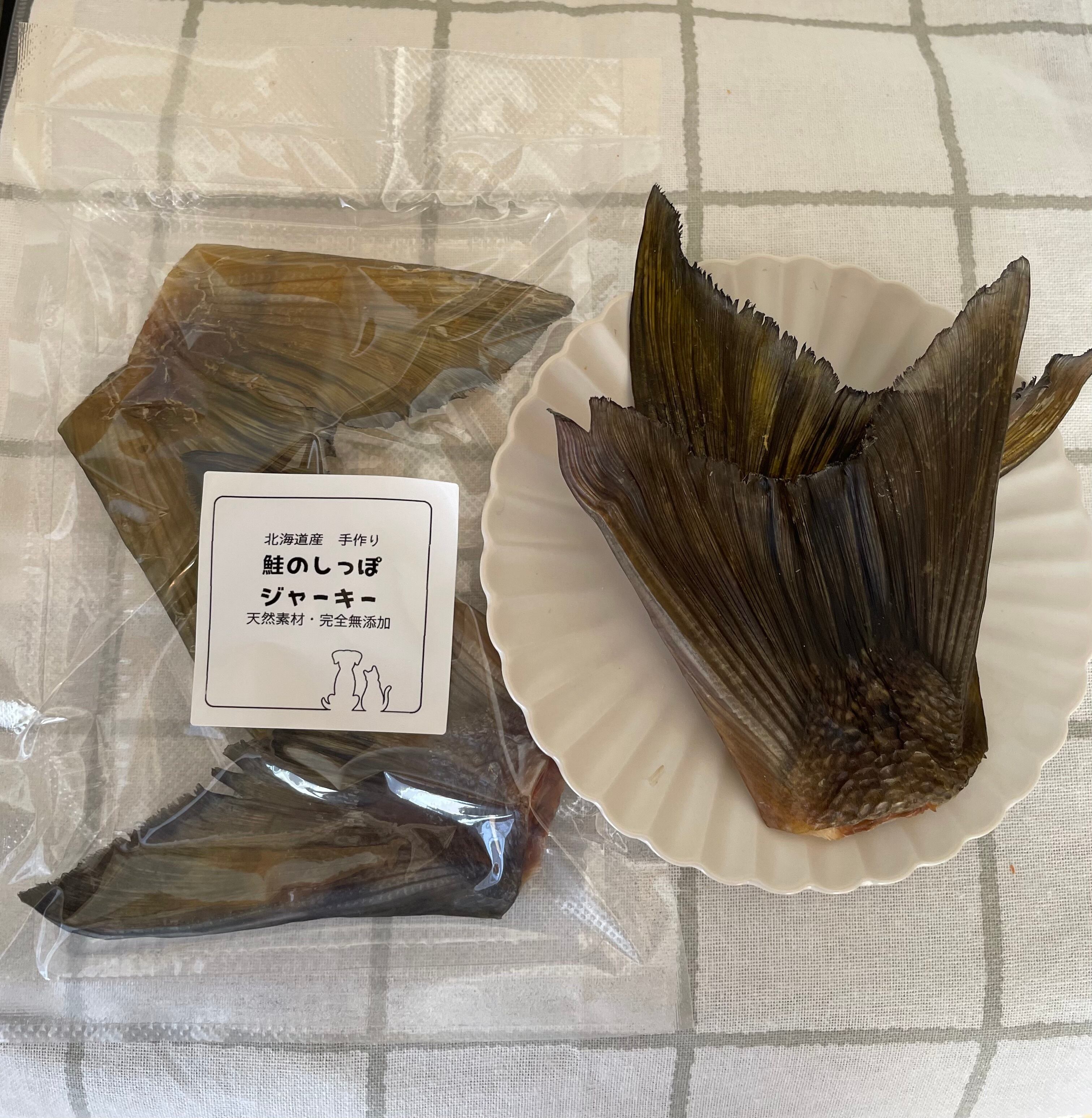 丁寧に捌いた鮭のしっぽをじっくりと乾燥させました。